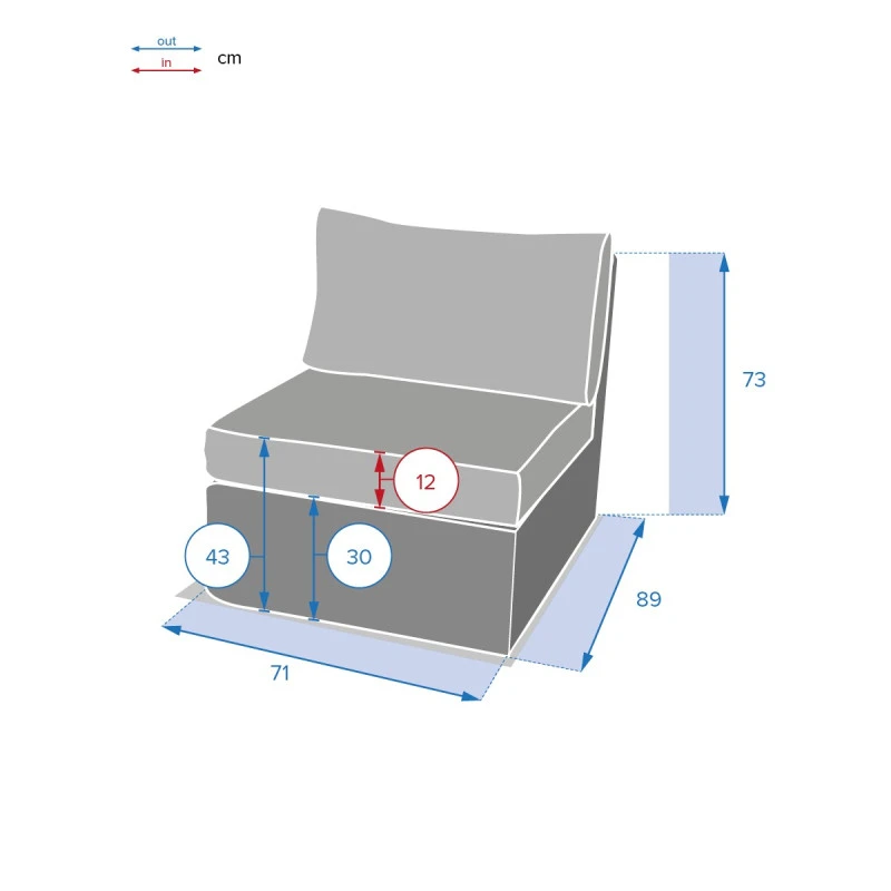 Le coussin d’assise et le coussin de dossier sont inclus et déhoussables pour un entretien facile.