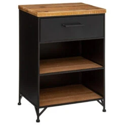 Chevet en métal et bois composé d’un tiroir et de deux niches de la marque Atmosphera. Ce petit meuble conviendra très bien comme chiffonnier de rangement ou encore comme meuble bas dans la cuisine.