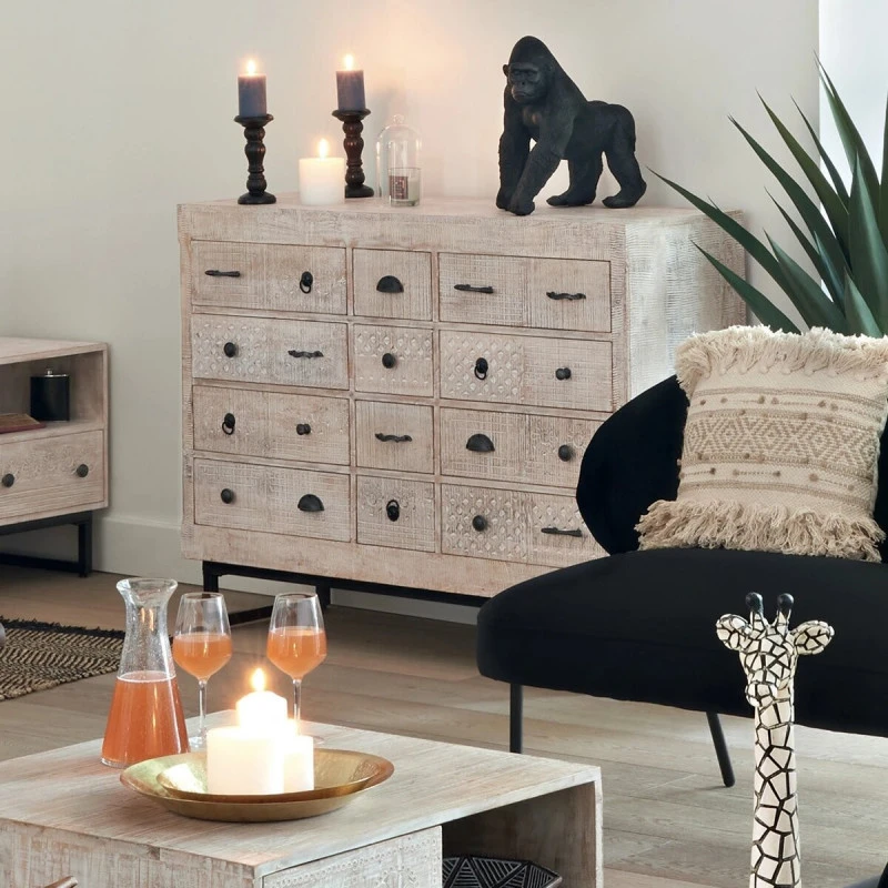 Cette grande commode 12 tiroirs en bois de manguier sculpté de la marque Atmosphera saura vous séduire par son style unique.