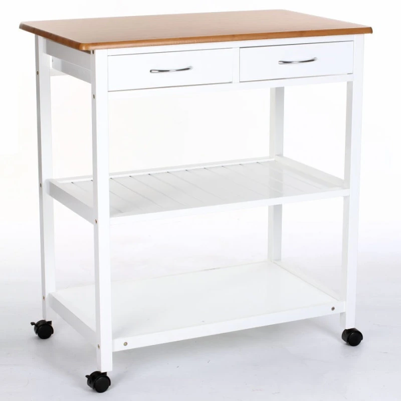 Ranger, desservir la table et mettre une touche de modernité dans la cuisine, voila tout ce que permet de faire cette desserte grand modèle. Équipée d’un plateau supérieur + 2 tablettes inférieures + 2 tiroirs. Montée sur roulettes. Coloris IMITATION BAMBOU sur le plateau supérieur. Structure en fibres de bois de moyenne densité (MDF). Poignées des tiroirs en métal Roues en plastique (PP).