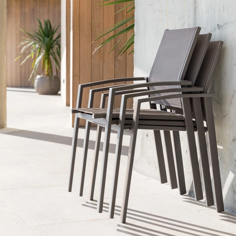 Conçu pour durer, le fauteuil Axiome est en aluminium traité époxy et en texaline (un tissage souple de polyester enduit de PVC). Il résiste ainsi aux pluies fines et aux UV.