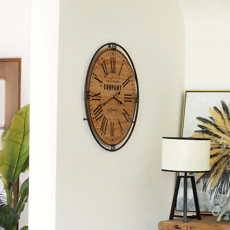Horloge en bois et fer avec chiffres romains de la marque Atmosphera. Un style résolument industriel pour cette horloge « Colonial ».