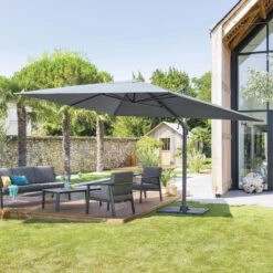 Protégez vous du soleil tout au long de la journée grâce au parasol décentré Eléa inclinable coloris ardoise de la marque Hespéride.