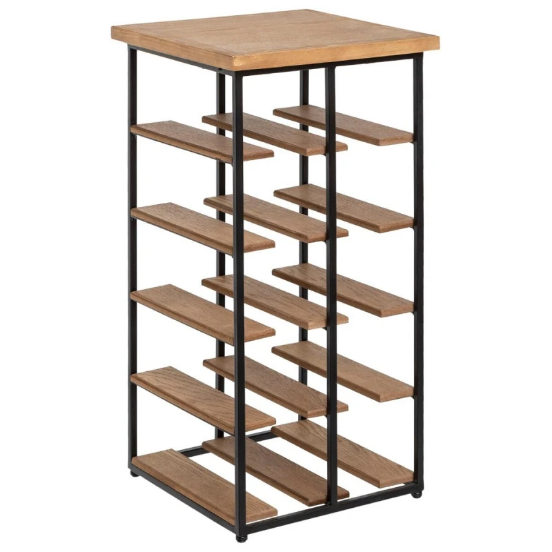 Range bouteilles en bois et métal noir de la marque Atmosphera. Ce range bouteilles peut contenir jusqu’à 10 bouteilles.