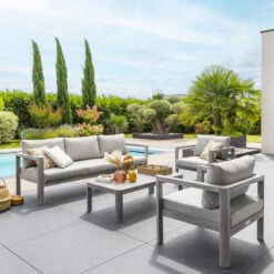 Détendez vous grâce au salon de jardin 5 places Jauca de la marque Hespéride.