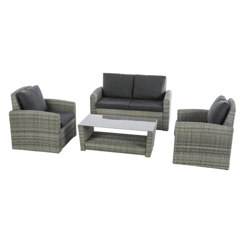 Salon de jardin 4 places Polynésia de la marque Hespéride. Le charme de la résine tressée apportera de la chaleur à votre terrasse.