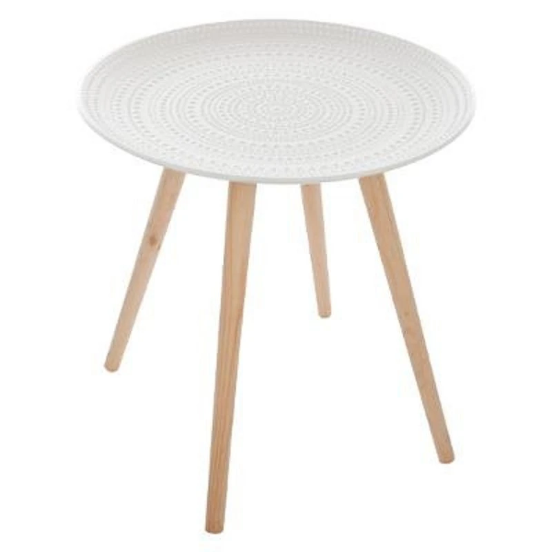 Table basse Miléo plateau rond et 4 pieds inclinés au design très tendance.