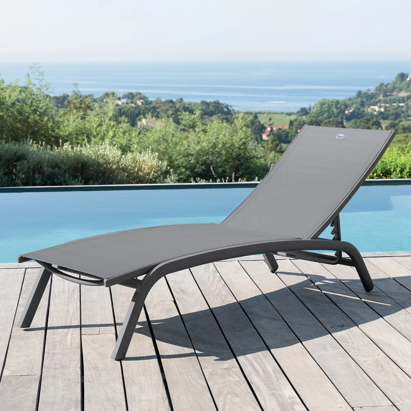 Profitez du soleil avec ce transat Bonao coloris ardoise et graphite de la marque Hespéride.